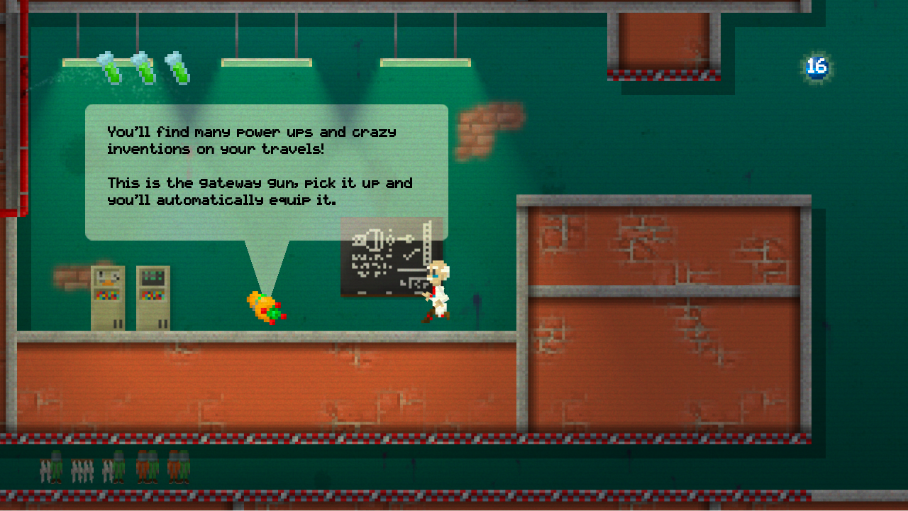 GatewaysGateways is a 2D platform game set in the lab of an inventor called Ed following an outbreak of a number of his more "creative" experiments. Can you help him escape the lab?Alongside the traditional platform elements such as jumping on enemies heads, spikes and moving platforms are the gateway guns. The gateway guns allow you to place two gateways on the walls, floors and ceilings of the lab so that when you pass through one you emerge out of the other. As progress is made through the game different types of gateway gun are introduced with different effects. After the basic gun, you acquire a gun that creates two gateways of different sizes, passing through one way shrinks Ed to half his size and the other way makes Ed grow to twice his size. Then you find a gun where one gateway doesn't just connect to the others location but also its time, allowing Ed to travel back in time and encounter earlier versions of himself. Finally, the last gun manipulates gravity so passing through allows Ed to walk along walls and on ceilings.Gateways takes place on a single sprawling map rammed with puzzles and challenges. As power ups are acquired more and more of the map opens up containing more power ups and secrets. In addition to the gateway guns Ed will also find a torch letting him light up the darker areas of the map and a mirror which can be used to deflect lasers.A sophisticated help system helps Ed along throughout the game. Every puzzle has a help point next to it where Ed can use power orbs to find out if the puzzle can be solved using his current power ups and abilities. If it can be solved and you're still stumped then spending more power orbs will provide you with the solution.Buy nowDownload Gateways to your XBox 360 or buy it for $3.Gateways for PC is availabe to buy from Steam, Desura, Amazon or directly here as a DRM-free standalone executable with an option to get a Steam key as well.Windows DemoDownload the Gateways Demo v1.11 (92.7MB)System Requirements:OS - XP/Vista/7Processor: Dual Core 2.0 GHz or equivalentMemory: 256MBHD Space: 44MBVideo Card: DX10 CompatibleShader Model: 3.0Windows EditorWant to create your own Gateways levels? The editor is now available.Download the Gateways Editor v1.00 (2.44MB)The prerequisites are the same as the game itself so if you can run Gateways you can run the Gateways editor.Check out this demonstration video to see how easy it is to get started designing your own level. If you create something awesome then be sure to post on the forums about it!Awards Gateways was one of the winners of Microsoft’s Dream Build Play compeititon 2012 Gateways got an honorable mention in the Technical Excellence category of IGF 2013VideosDownload the trailer (86.7MB)Download the playthrough (190MB)Download the help point video (359MB)ScreenshotsDownload the press kit containing all screenshots plus box art images and gateways logo.